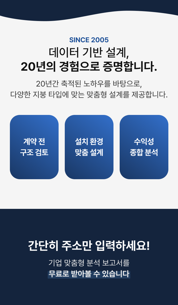 뒤로가기 산업단지 태양광, 미리 시뮬레이션 해보세요 - 태양광 프리미엄 보고서 출시 성명 연락처 문의유형 문의유형을 선택해주세요발전사업자가소비RE100금융상품유지관리자재구매기타문의 사업지주소 내용 개인정보 수집 및 이용을 확인하고 동의합니다. 자세히보기 문의하기 개인정보 처리방침 닫기 목록으로